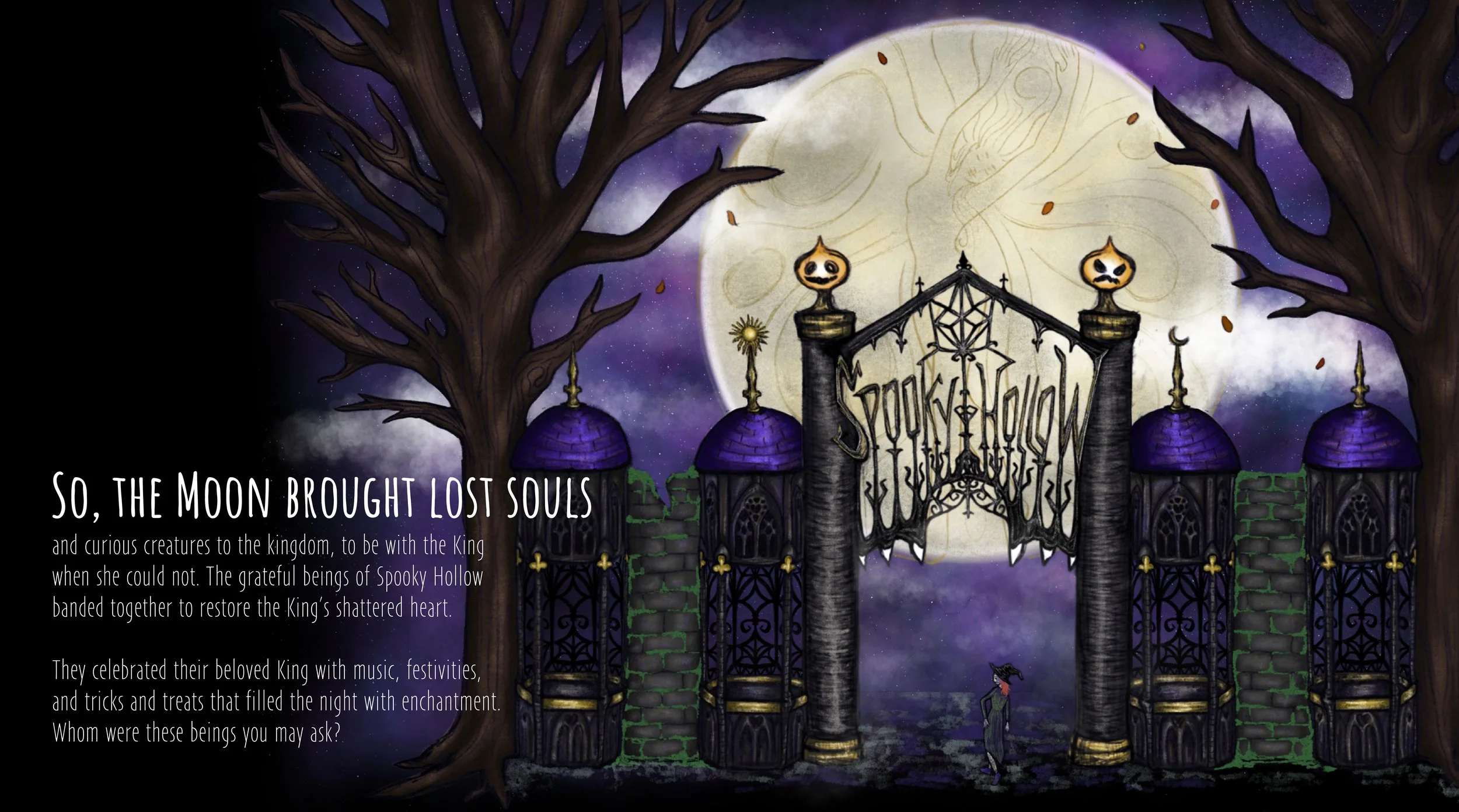 Welcome to Spooky Hollow, a fantastical theme land where you'll journey alongside courageous knights, navigate eerie landscapes, and unlock the secrets of the King's heart.